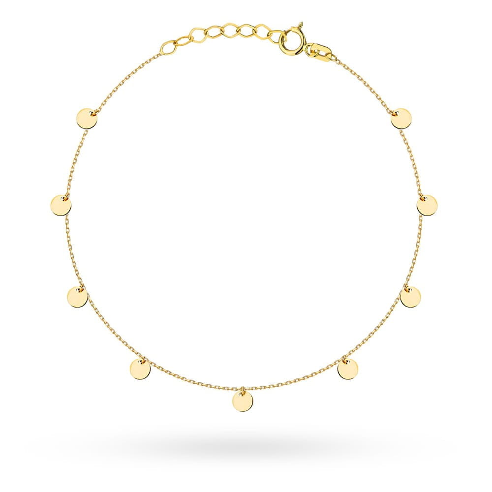 Nasza złota bransoletka to pełen wdzięku dodatek do Twojej kolekcji biżuterii. Ma długość 17 centymetrów, z możliwością regulacji o dodatkowe 2 centymetry, co sprawia, że idealnie dopasuje się do Twojego nadgarstka. Wyjątkowy wzór składa się z delikatnych kółek o średnicy 3,5 milimetra, które dodają bransoletce subtelności i lekkości.