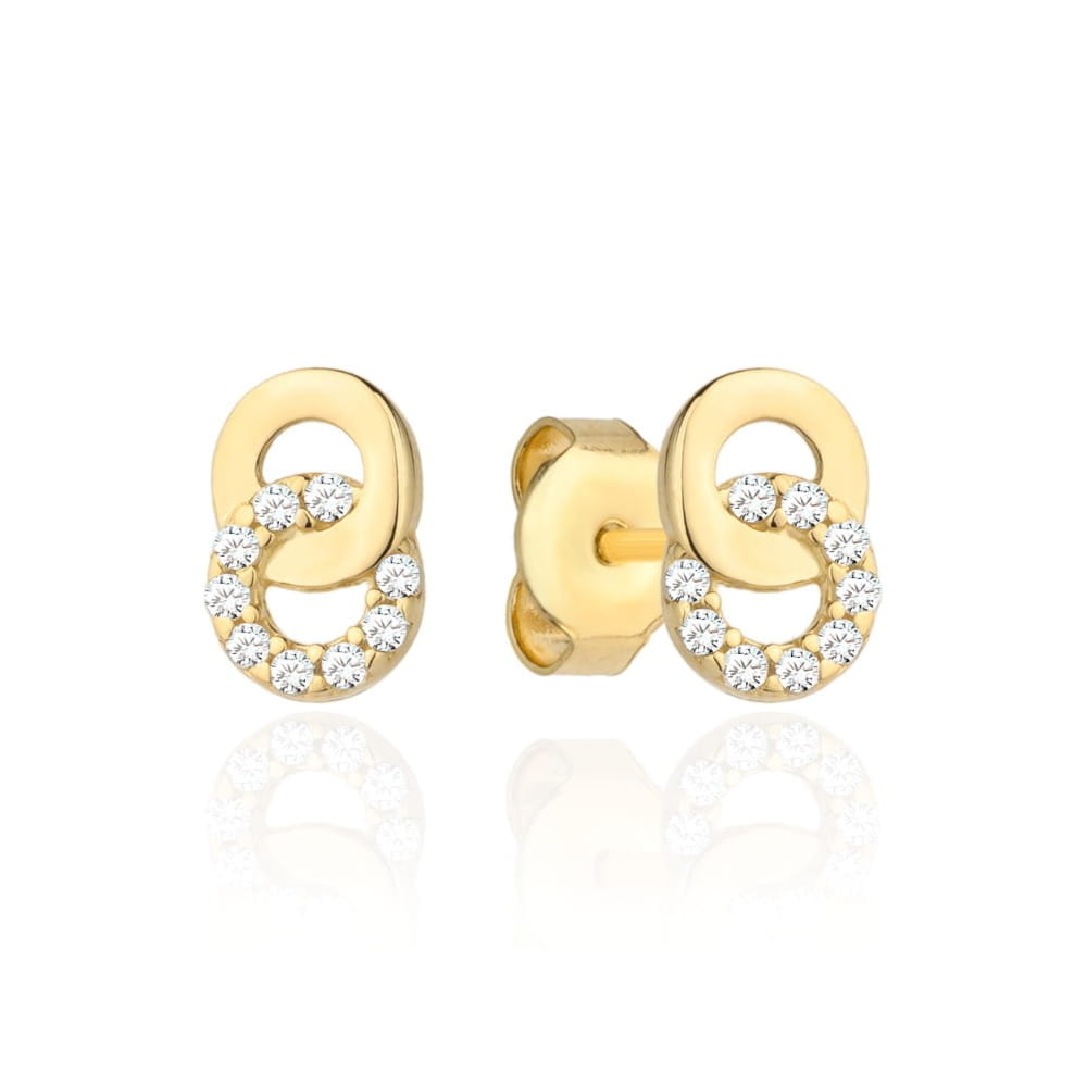 Kolczyki dwa splecione kółka złote i z cyrkonii