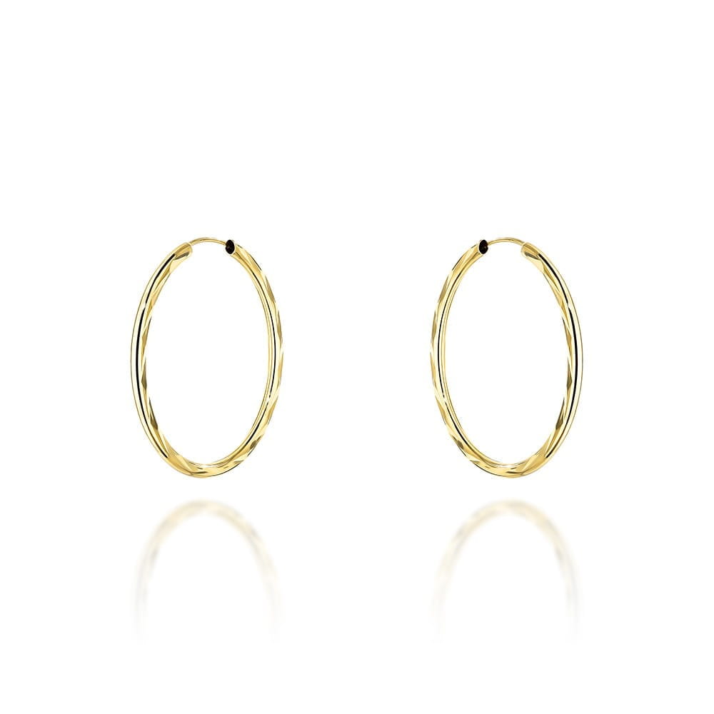 Kolczyki te prezentują klasyczny wzór w postaci koła, który jest symbolem doskonałej harmonii i wiecznej elegancji. Ich kreolowy typ zapięcia sprawia, że są one łatwe w zakładaniu, a jednocześnie pewnie trzymają się na swoim miejscu przez cały dzień.