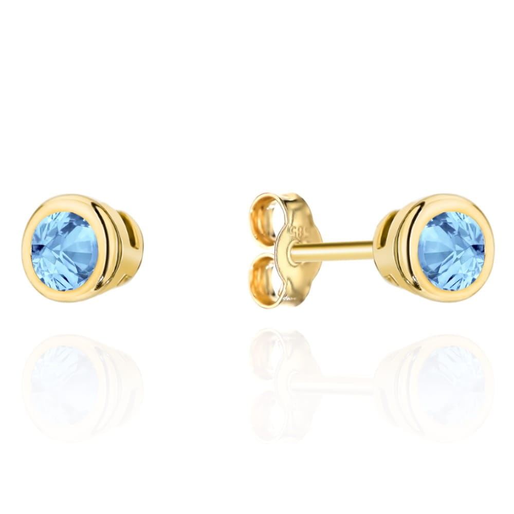 Kolczyki złote błękitny kamień w złotej oprawie