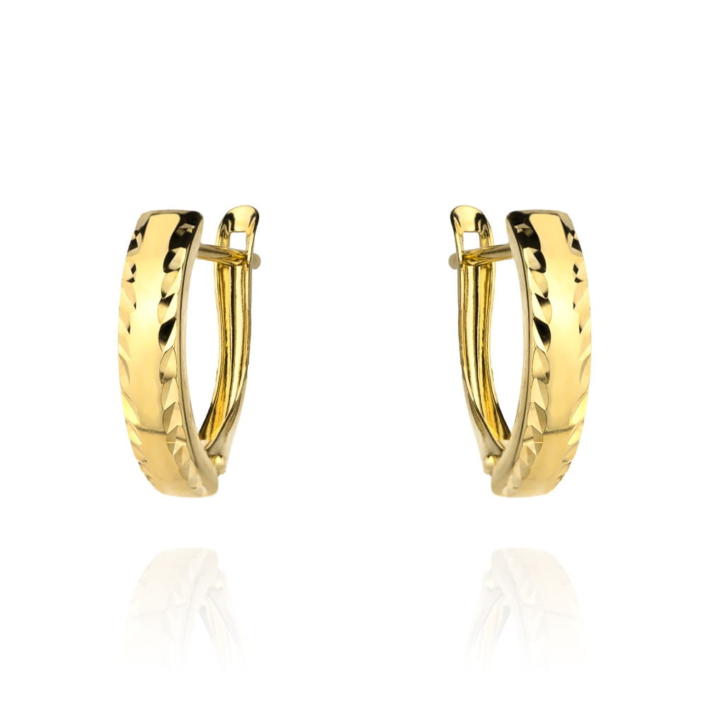 Kolczyki złote diamentowane na obu brzegach szer. 4 mm