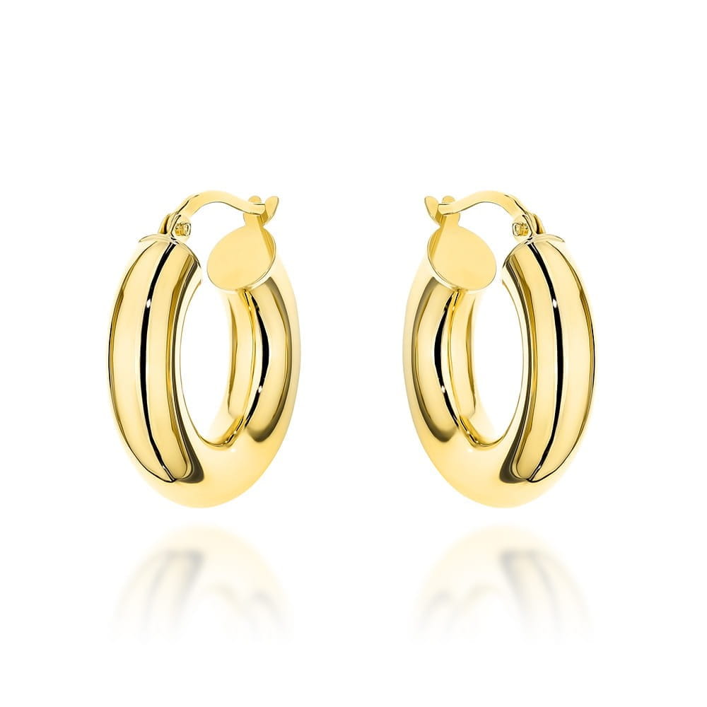 Kolczyki wykonane z żółtego złota próby 585, prezentujące klasyczny wzór kółek o średnicy 20 mm. Ich ponadczasowy design jest dodatkowo podkreślony przez solidną szerokość kolczyka wynoszącą 5 mm, co nadaje im wyrazistości i elegancji. Model posiada wygodne i trwałe zapięcie typu angielskiego, które zapewnia bezpieczeństwo i komfort podczas noszenia. Kolczyki są lekkie i doskonale nadają się do codziennego użytku, a ich minimalistyczny styl czyni je wszechstronnym dodatkiem, pasującym zarówno do casualowych, jak i formalnych stylizacji.
