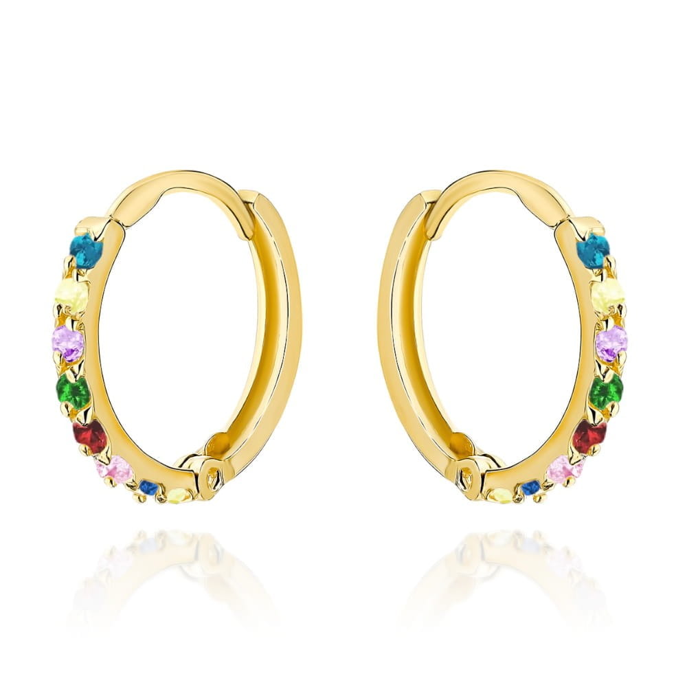 Kolczyki złote kółeczko wysadzane kolorowymi kamieniami