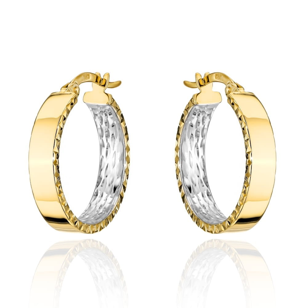Kolczyki złote kółka wewnętrznie diamentowane w dwóch kolorach złota większe