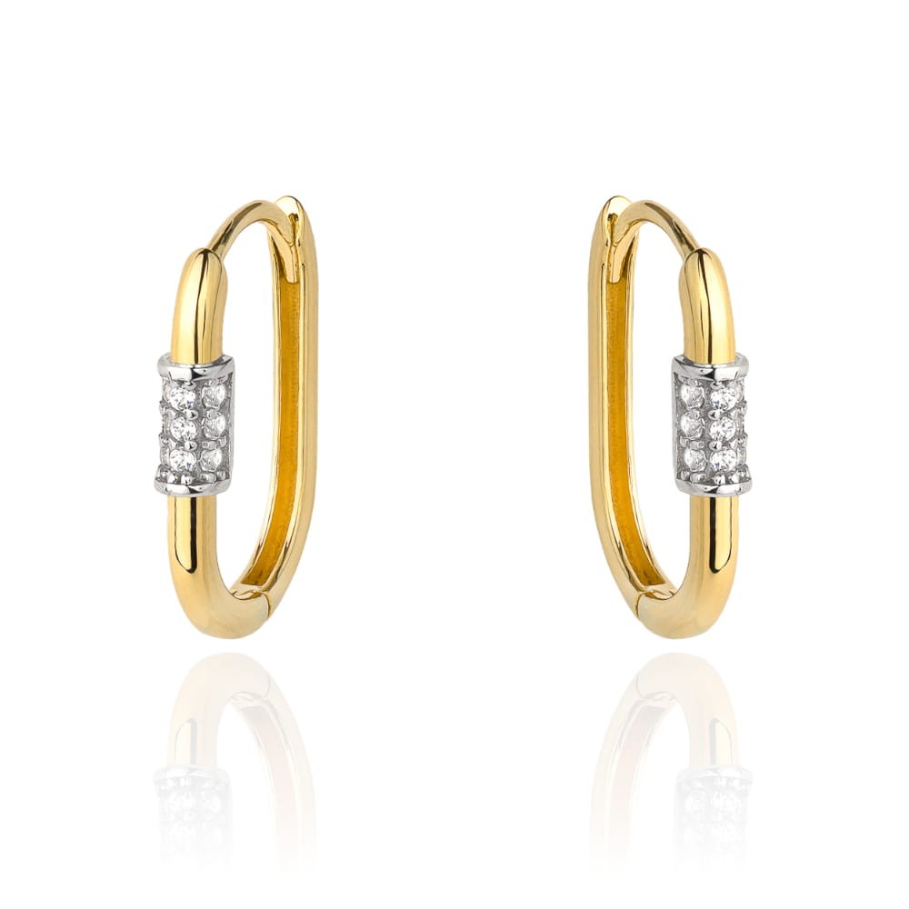 Złote kolczyki o oryginalnym kształcie z subtelnym kamieniem to elegancka i nietuzinkowa propozycja dla kobiet, które cenią wyjątkowy design i wysoką jakość. Wykonane z żółtego złota próby 585, zachwycają precyzyjnym wykonaniem oraz harmonijnym połączeniem formy i blasku. Kolczyki mają wysokość 12,85 mm, szerokość 12,15 mm, a grubość elementu ozdobnego to 2,75 mm. Całość uzupełnia wygodne i bezpieczne zapięcie angielskie, które sprawdzi się w codziennym użytkowaniu i na wyjątkowe okazje.