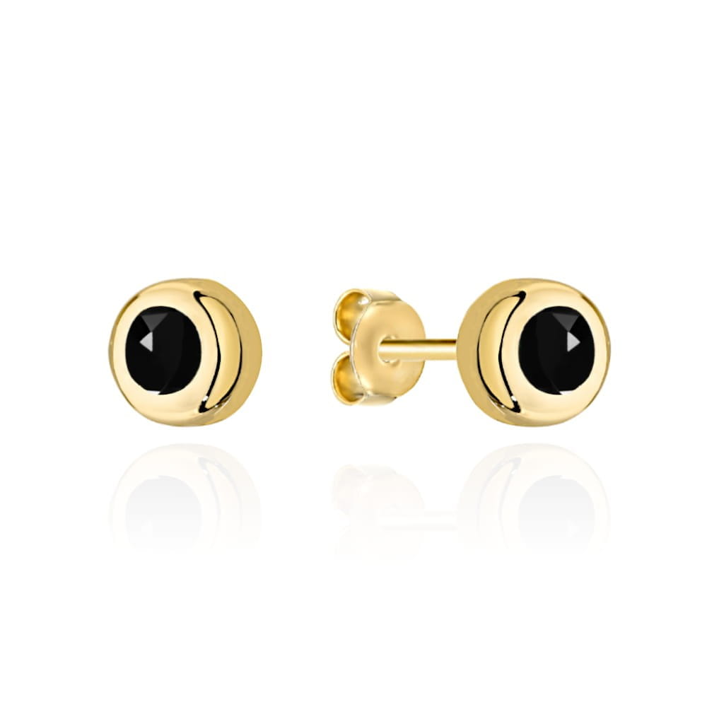 Kolczyki złote mały czarny kamyk otoczony złotem