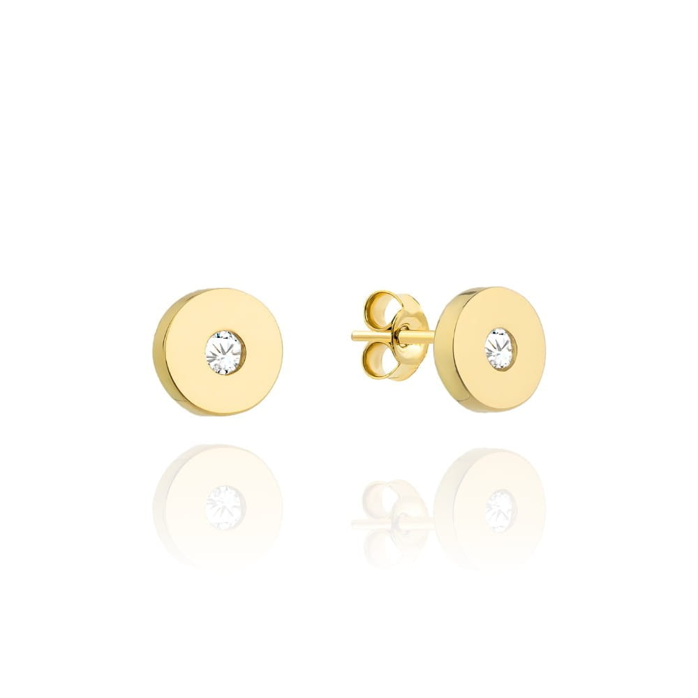 Kolczyki złote pełne kółko z cyrkonią na środku
