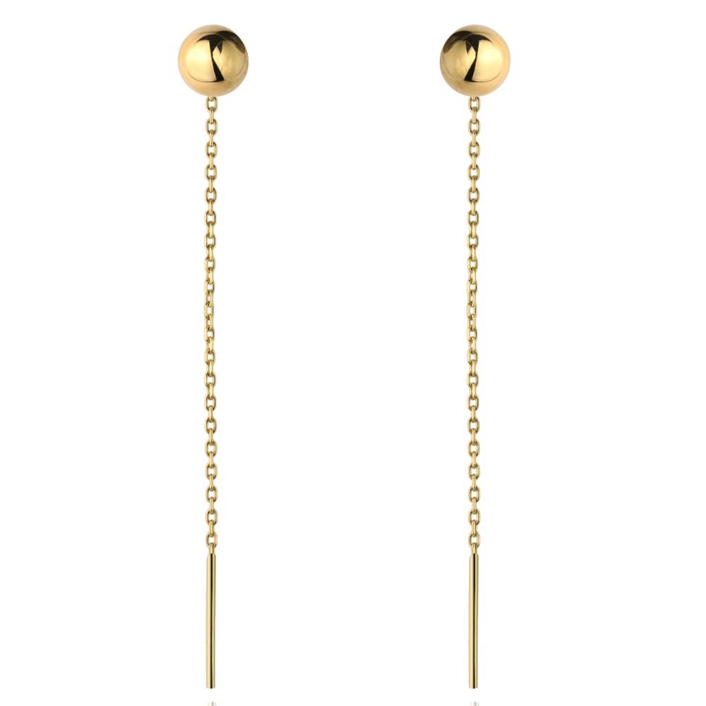 Delikatne kolczyki przewlekane z kulkami wykonane z najwyższej jakości żółtego złota próby 585. Minimalistyczny design sprawia, że doskonale sprawdzą się jako subtelny akcent codziennych i eleganckich stylizacji.