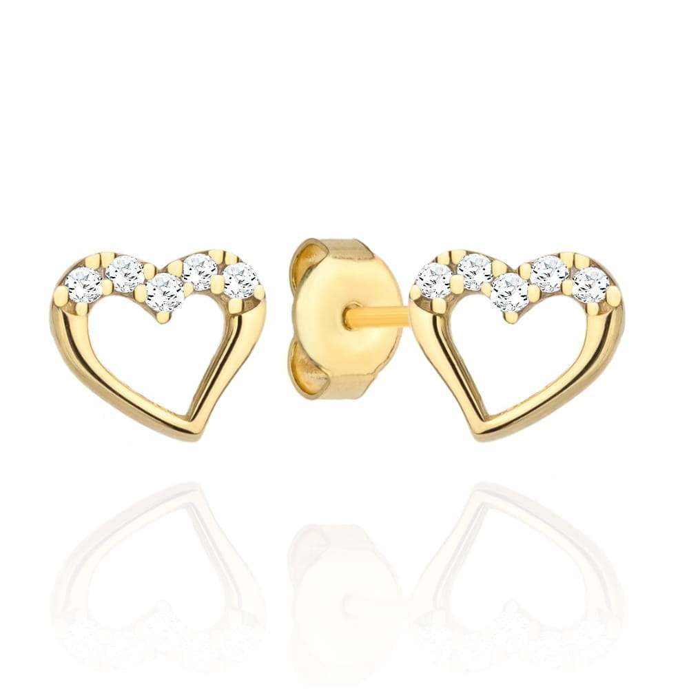 Poczuj puls romantyzmu z naszymi złotymi kolczykami w kształcie serca. Wykonane z najwyższej próby złota (585), te urokliwe sztyfty prezentują intensywny, żółty kolor, który doskonale współgra z romantycznym wzorem w formie serca. Kamień cyrkonii o średnicy 2 mm dodaje im delikatnego blasku, tworząc efektowny design.