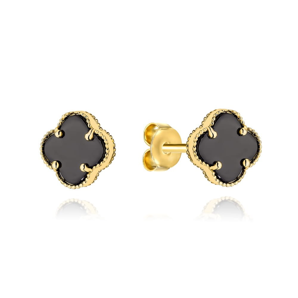 Kolczyki złote z czarną koniczynką 6 mm