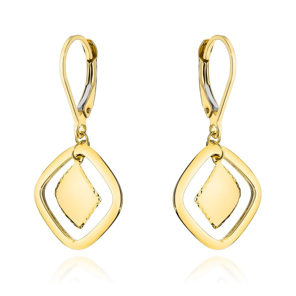 Kolczyki złote z wiszącym rombami na angielskim zapięciu