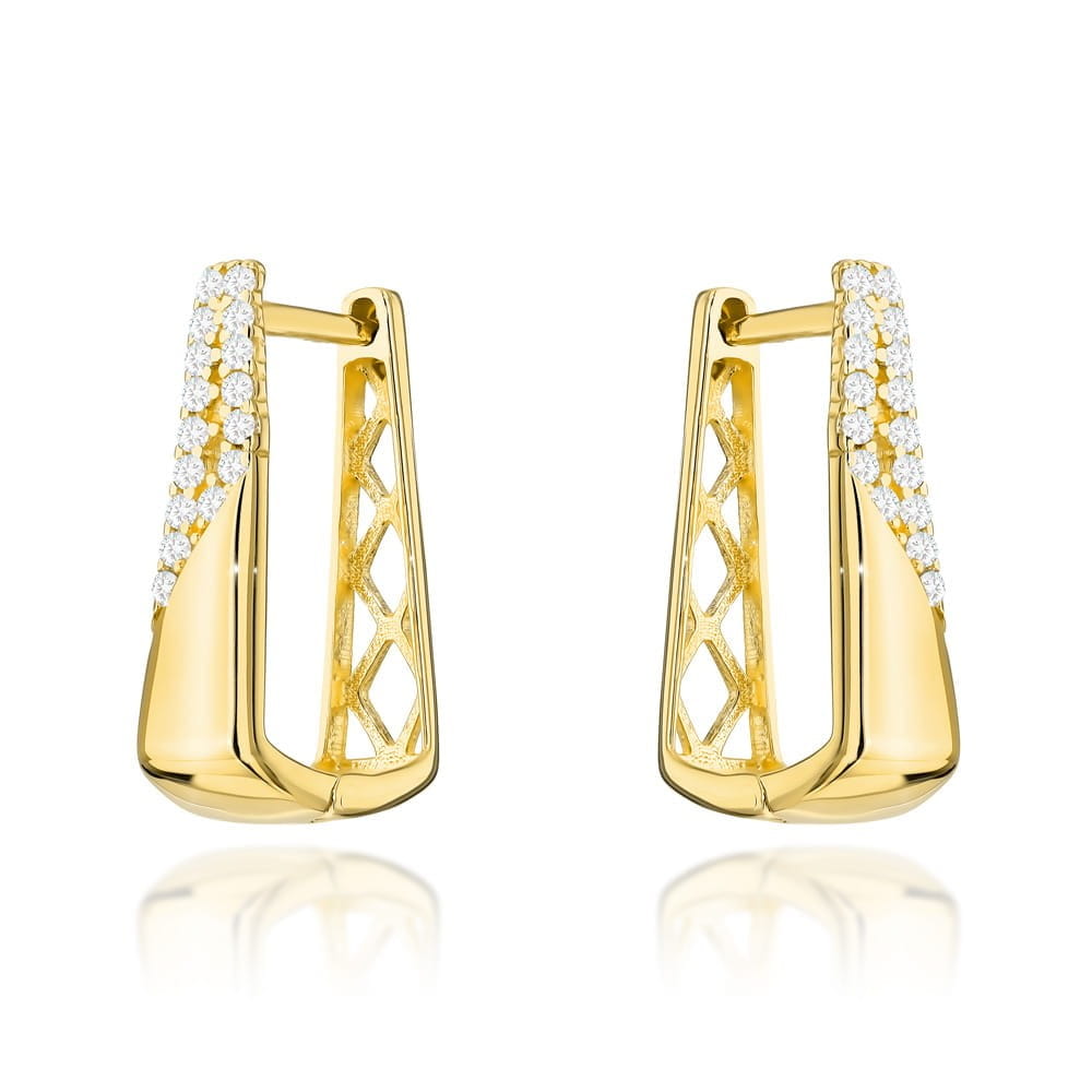Kolczyki złote zdobione cyrkoniami i ażurowym tyłem