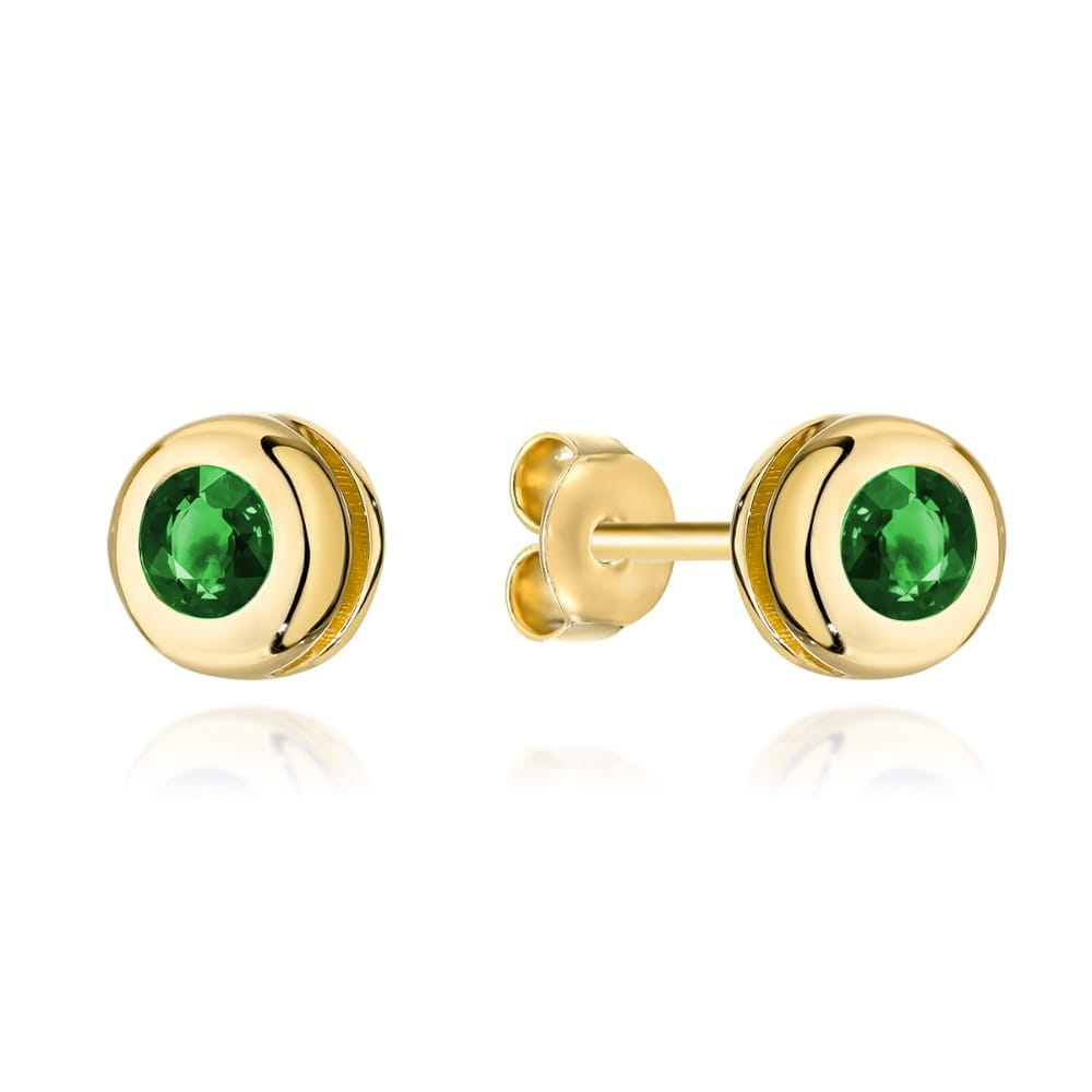 Kolczyki złote zielony kamyk otoczony złotem