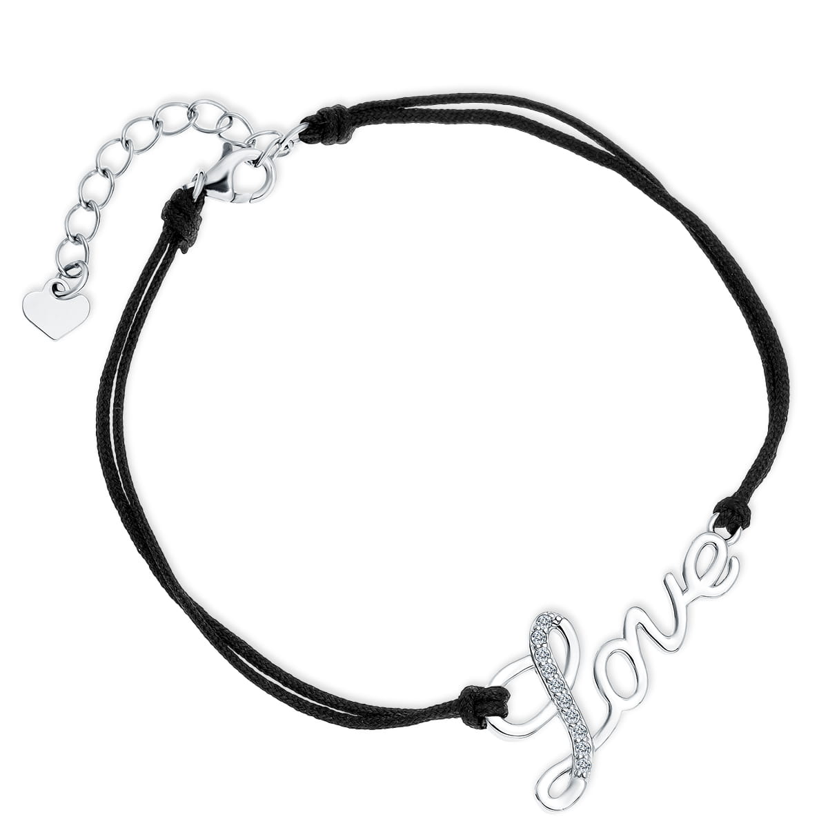 Srebrna bransoletka z podwójnym czarnym sznurkiem napis LOVE SL-Z1769BR-B