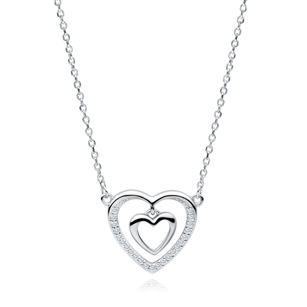 Srebrny naszyjnik podwójne serce z cyrkoniami SL-Z1766NR-W