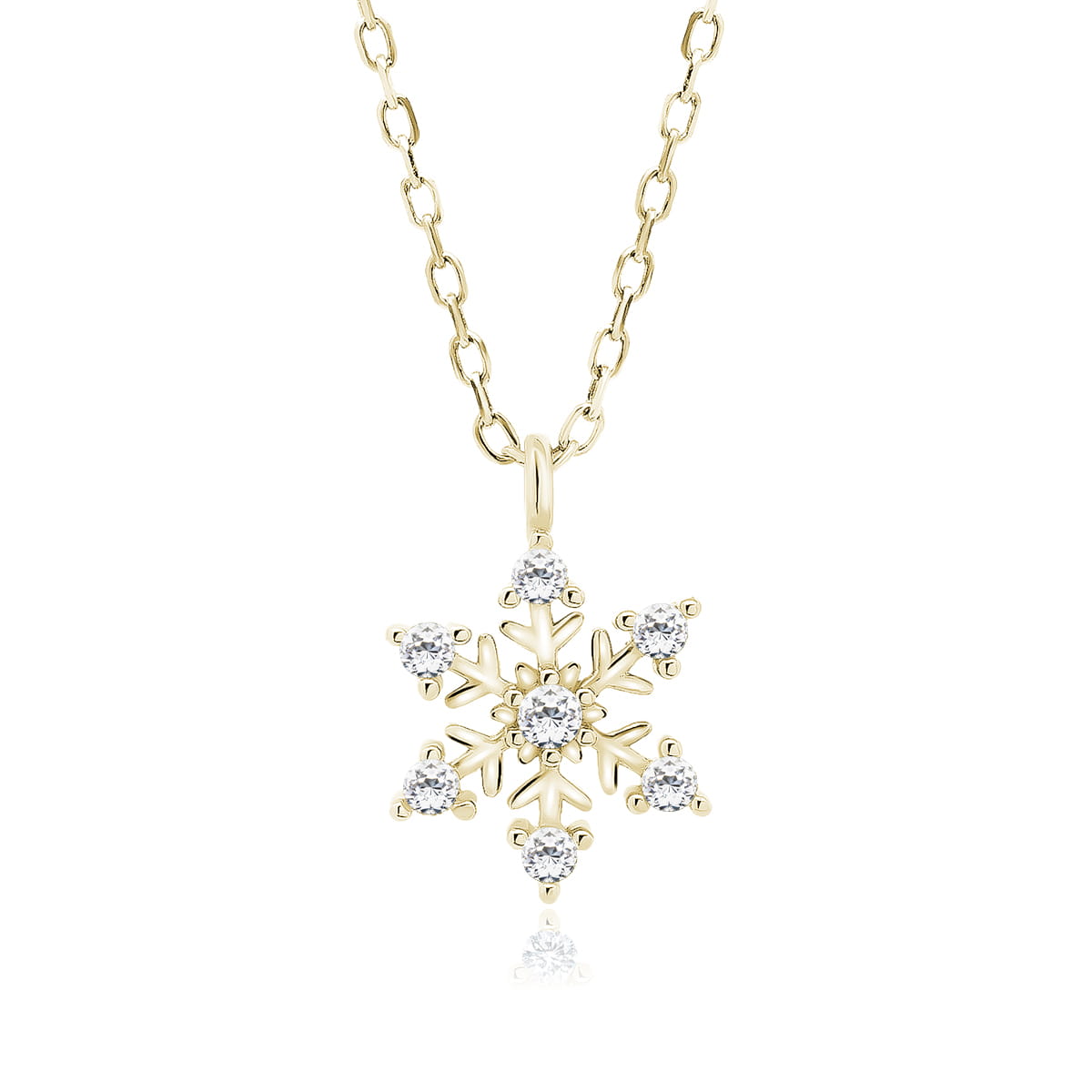 Bogaty i pełen wdzięku naszyjnik z wysokiej jakości pozłacanego srebra próby 925. Piękny wzór naszyjnika w kształcie płatku śniegu/śnieżynki dopełniony jest dodającymi blasku białymi cyrkoniami. Naszyjnik ten będzie pięknym i oryginalnym dopełnieniem każdej eleganckiej stylizacji.
