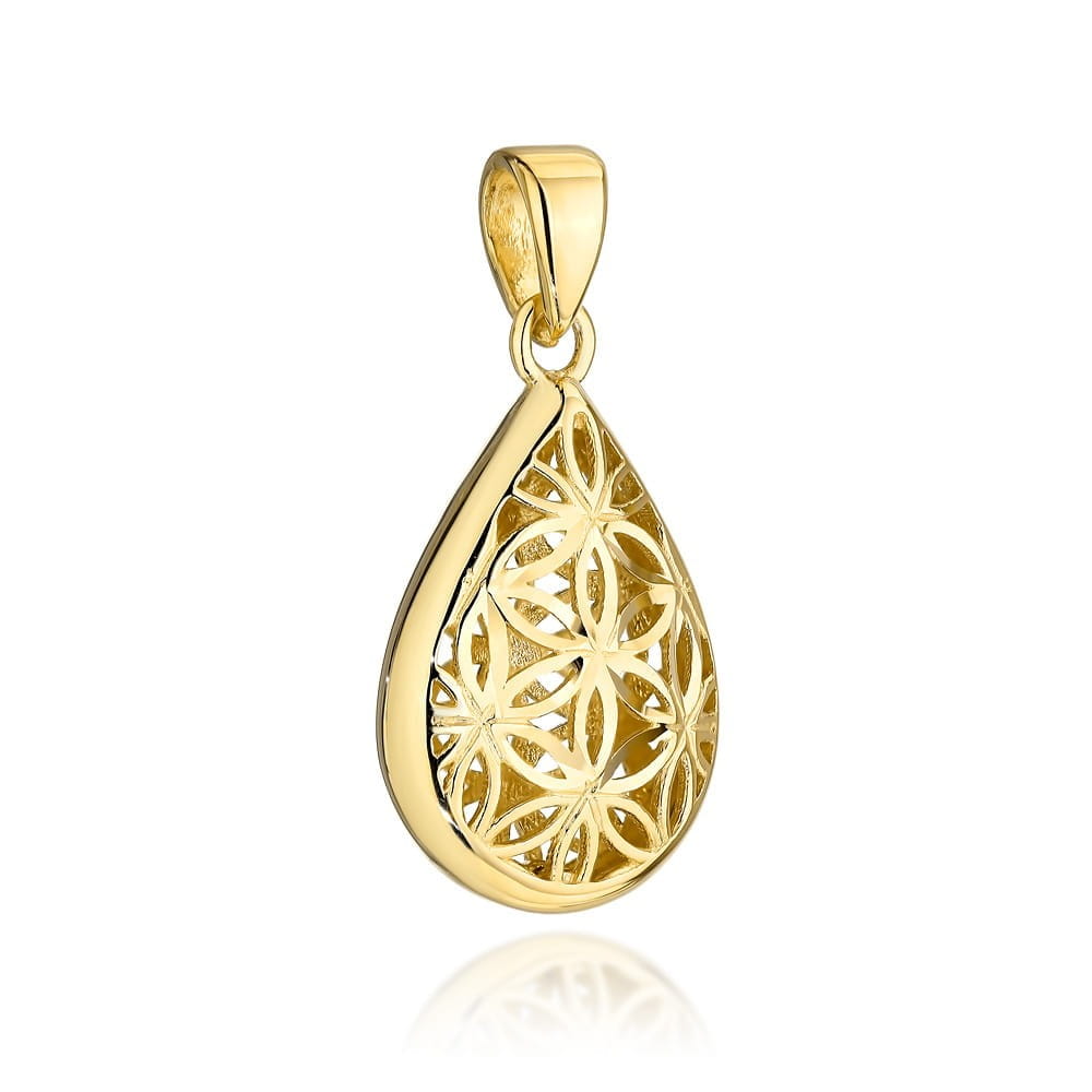 Zawieszka złota ażurowa łezka z kwiatami