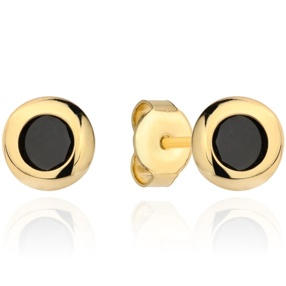 Złote kolczyki na sztyfcie czarny kamień w gładkiej oprawie